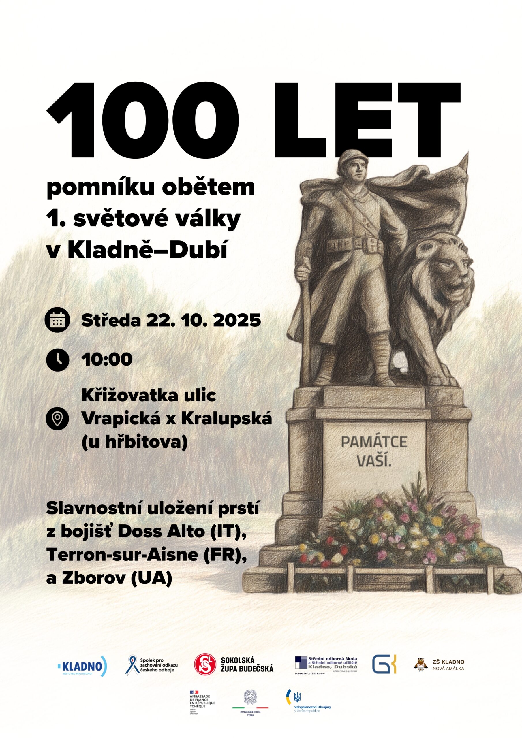 Ve středu 22. října 2025 se uskutečnila slavnost u příležitosti 100. výročí pomníku obětem 1. světové války v Kladně–Dubí. Součástí akce bylo slavnostní uložení prsti z bojišť Doss Alto (Itálie), Terron-sur-Aisne (Francie) a Zborov (Ukrajina).