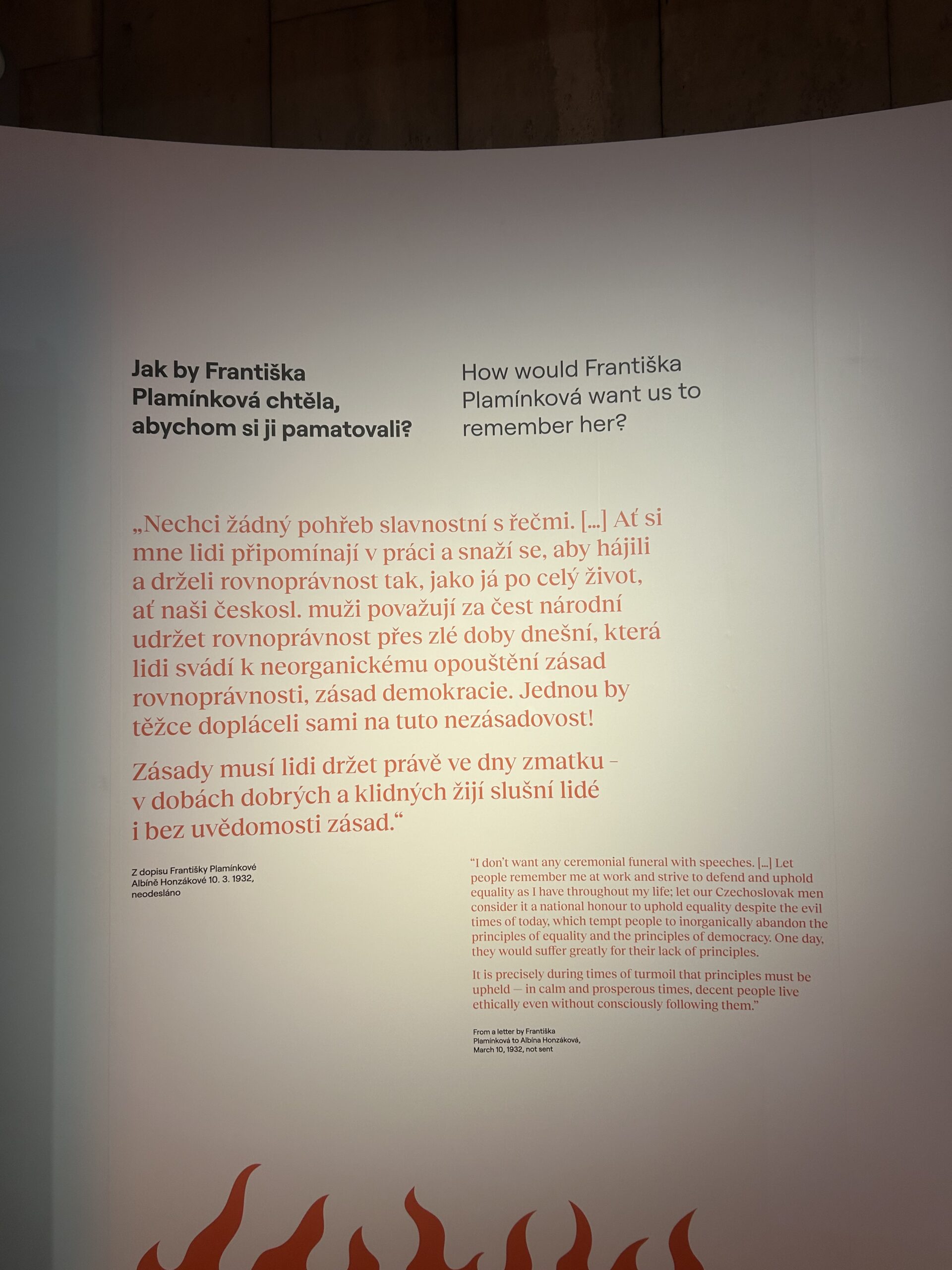 Interaktivní výstava Františka Plamínková a my umožňuje ponořit se do dobových materiálů a přemýšlet o odkazu Plamínkové v kontextu dnešní společnosti. V Nové budově Národního muzea bude výstava otevřena až do konce srpna příštího roku.