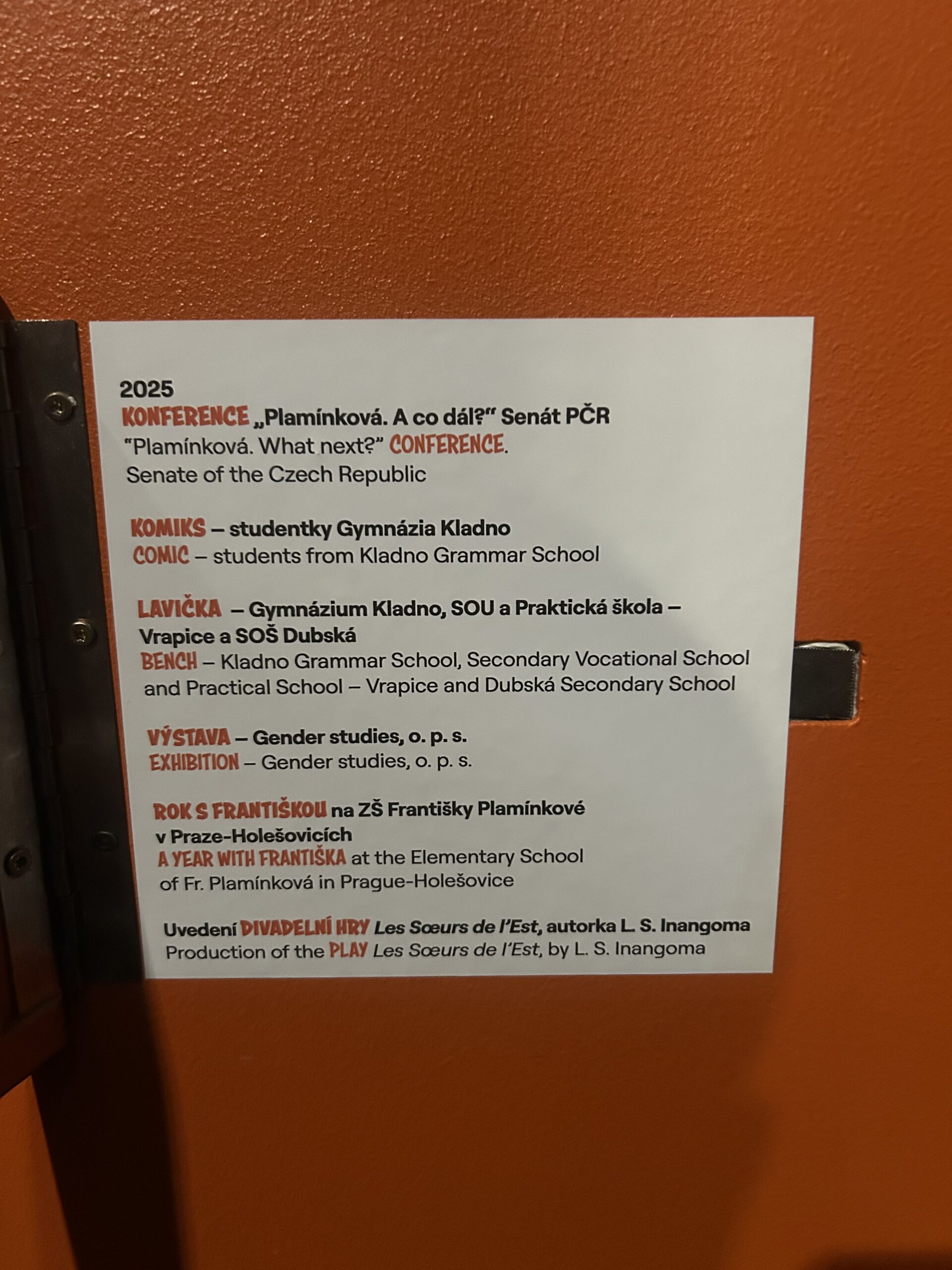 V letošním roce jsme si připomněli jednu z nejvýznamnějších osobností české historie, bojovnici za ženská práva a senátorku Františku Plamínkovou. Máme velkou radost, že naše aktivity, které zahrnovaly vytvoření tematické lavičky, autorského komiksu a aktivní účast na odborné konferenci, nezůstaly bez povšimnutí - obdrželi jsme pozvání na vernisáž výstavy do Národního muzea v Praze, kde bude náš komiks o životě a díle Františky Plamínkové k dispozici široké veřejnosti. Tímto se i my aktivně a s patřičnou hrdostí zapojujeme do šíření odkazu této statečné ženy, který je i v dnešní době nesmírně aktuální.