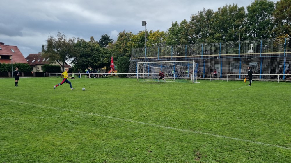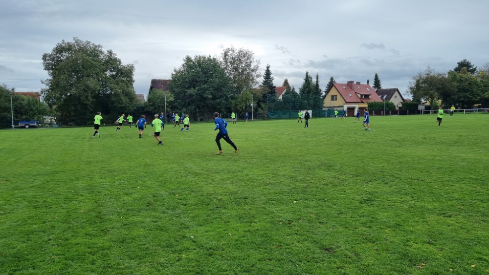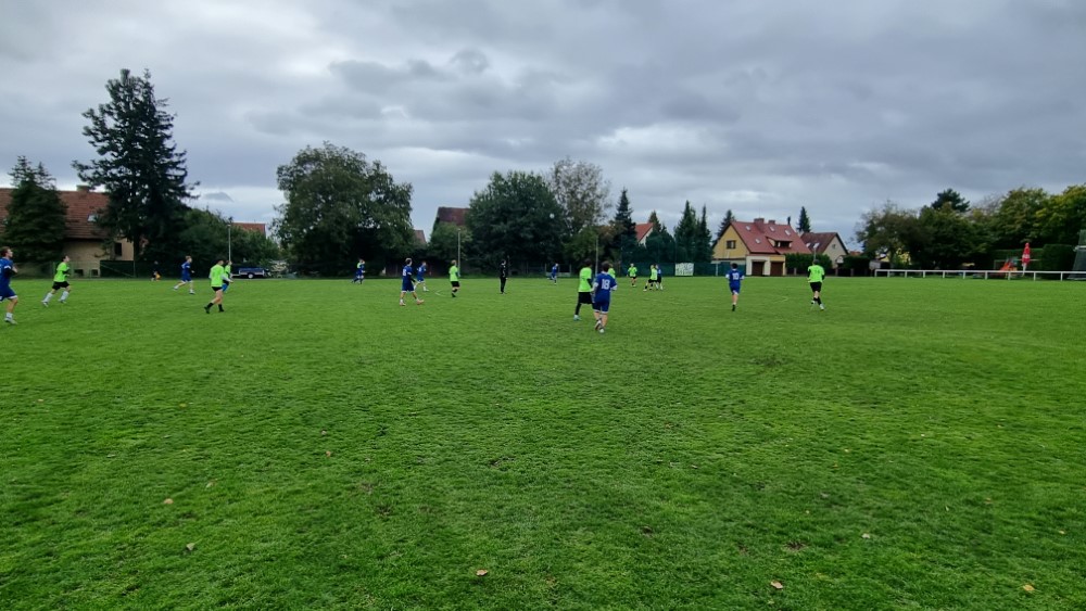 V prvním utkání jsme se utkali s týmem SŠDŘ Kladno u Hvězdy. Vstřelili jsme relativně brzký gól, poté jsme se bohužel začali trochu trápit a soupeř měl minimálně 2 velké šance na srovnání stavu. Naštěstí se nám následně podařilo vstřelit 2 branky v rychlém sledu a ty protivníka zlomily - výsledkem byly další branky v jeho síti a konečné skóre 7:0 (střelci: Valenta 3, Janát 2, Pokorný, Štreit).